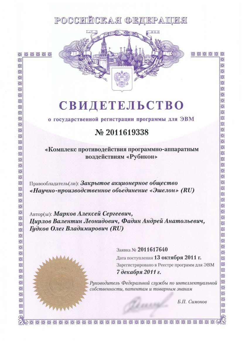ПАК «Рубикон» включен в единый реестр российских программ для электронных вычислительных машин и баз данных (реестр российского ПО). Приказ Минкомсвязи России от 18.03.2016